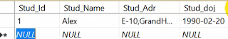 Insert Into Stud_Details(Stud_Id,Stud_Name,Stud_adr,_stud_Dob)values(4,'JoneDear','Street- B','2023-03-18');